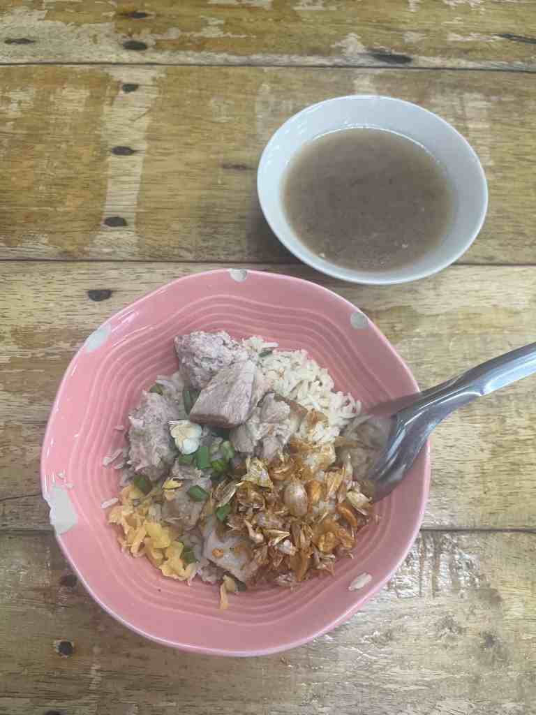 - Go Benz: ‘Khao Tom Haeng’ (dry boiled rice) and crispy pork
