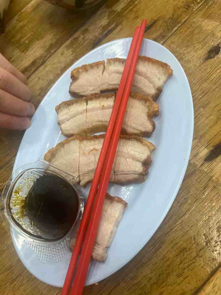 - Crispy Pork (หมูกรอบ) $2.8 (100 Baht)